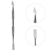 Незамінний інструмент для підготовки кутикули для подальшого видалення. Ця модель має дві робочі частини. Зручна у використанні за рахунок ручки з ребристою поверхнею. Розроблена з нержавіючої сталі, завдяки чому підлягає стерилізації та дезінфекції та при цьому вона не зіпсується від впливу різних хімічних розчинів.