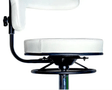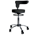 Стілець для майстра модель 8085 з двома регулювальними механізмами: зміна висоти стільця та висоти спинки. Регулювання висоти через металеве коло під сидінням. Спинка обертається по осі, може служити підлокітником. П'ятилучна хрестовина з маневреними поліуретановими коліщатками забезпечує тихе та легке пересування.