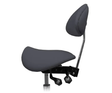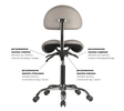Ергономічний стілець-сідло для майстра модель 4008-1 чорного кольору з розділеним сидінням і зручною спинкою має 4 регулювальні механізми: 3 важелеві механізми для зміни висоти, кута нахилу спинки та нахилу сидіння та 1 один механічний механізм для регулювання висоти спинки. Можливе використання сидіння у 2-х положеннях - з фіксованими або балансуючими рухомими частинами. При сидінні на стільчику-сідлі мінімізується на зону куприка, оскільки основною опорою є кістки тазу. Зручна ергономічна спинка сприяє підтримці поперекового корсету і фіксує положення на стільці.