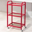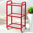 Візок косметологічний маніпуляційний з трьома полицями,малиново-червоний,скло: сатин/бронза
